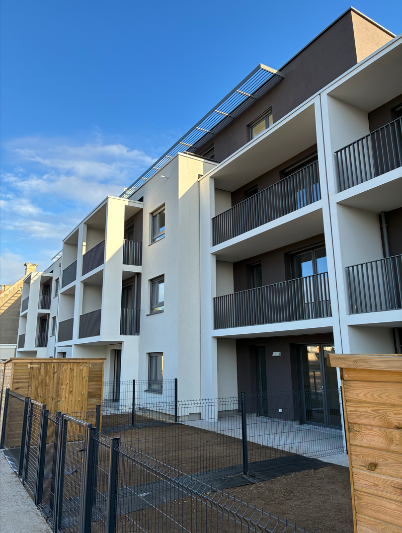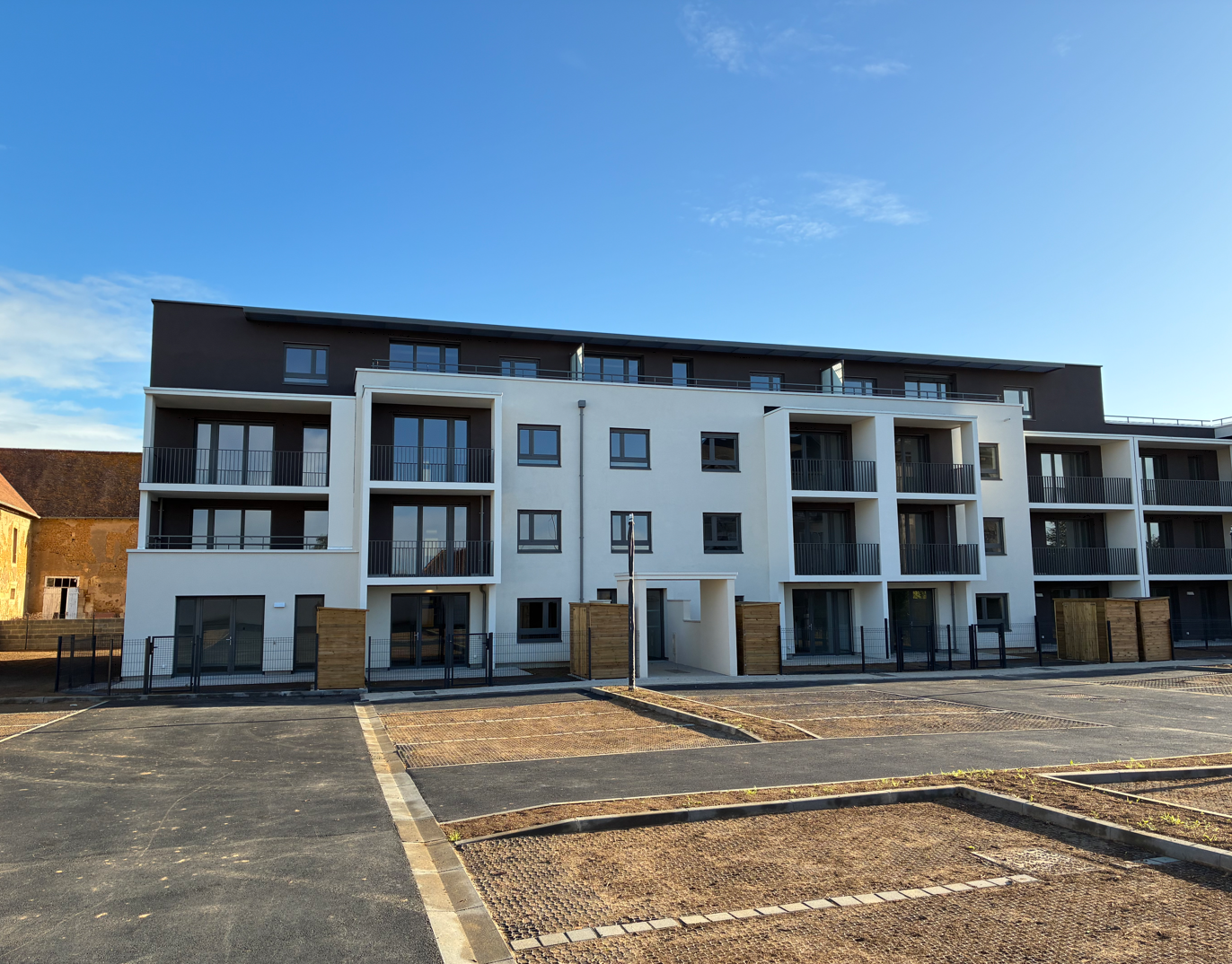 Située en centre-bourg de Cagny, la résidence L’Échauguette portée par Partélios Habitat réinvente le logement social. Avec une maîtrise d’œuvre interne et une architecture signée Schneider, elle associe structure bois-béton et isolation en paille insufflée, garantissant confort thermique et acoustique ainsi qu’une excellente inertie. Labellisée RT2012 et biosourcée niveau 1, la résidence limite son impact environnemental tout en maîtrisant les coûts.